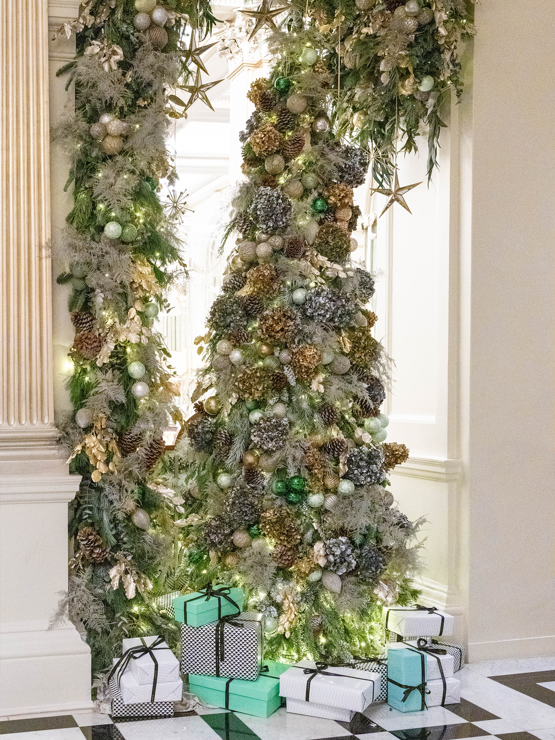 Our team works with rich winter foliage, layered textures, velvet ribbons and softly glowing lights to craft immersive festive environments that feel both timeless and unmistakably Claridge’s. Every installation is bespoke, carefully tailored to the space and occasion, ensuring a Christmas atmosphere that is elegant, refined and truly memorable.